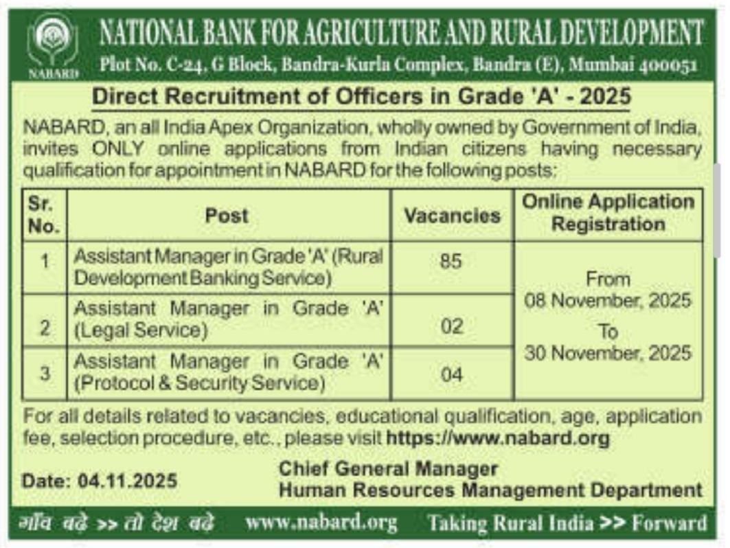 NABARD Grade A 2025 Notification – 91 Posts, Apply Now